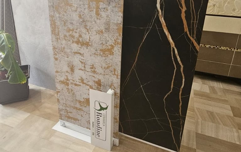 Due lastre di grande formato firmate Ceramica Rondine, ideali per ambienti moderni ed eleganti.